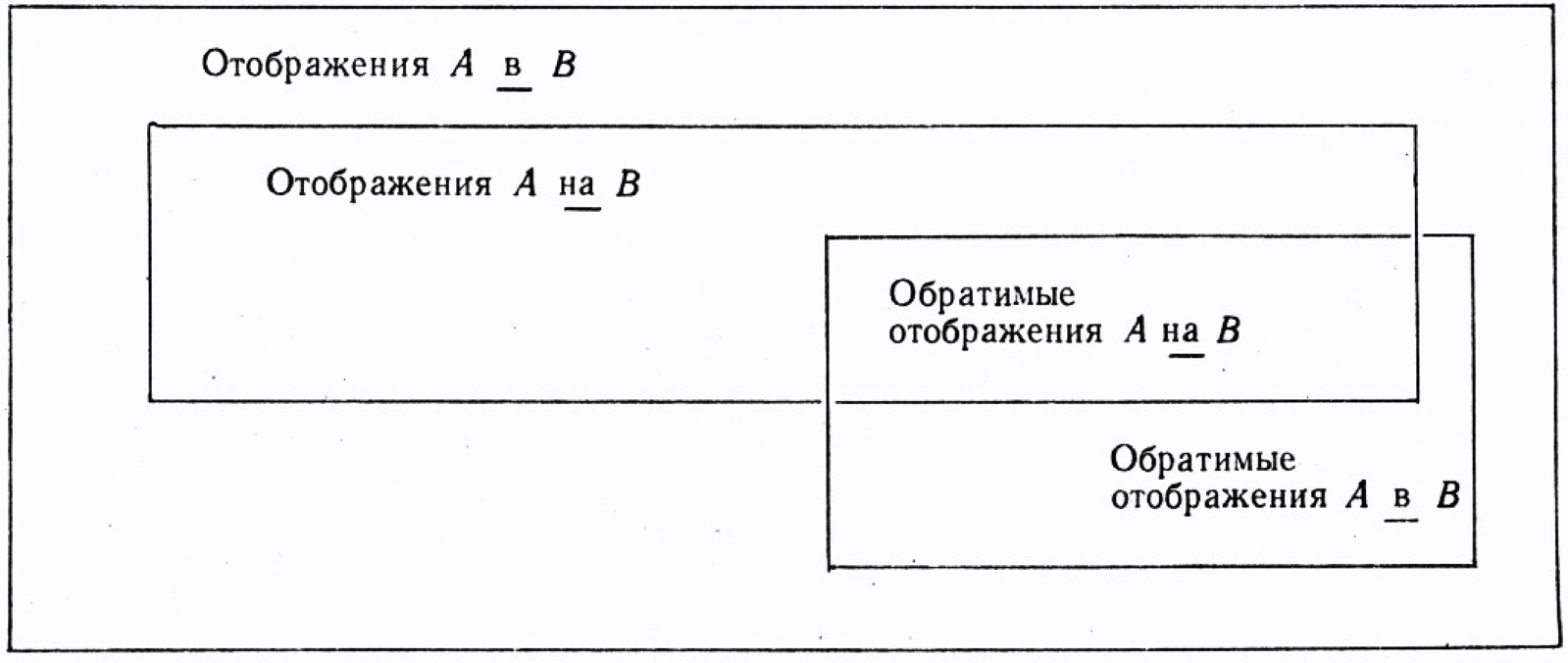 $A$ на$B$ французы называют «сюръективными», или «сюръекциями»; - обратимые отображения