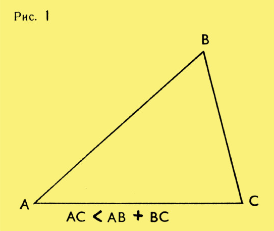 В самом начале изучения геометрии мы знакомимся с важным фактом: сторона треугольника меньше суммы двух других сторон (рис. 1). Одно это неравенство, которое называют неравенством треугольника, позволяет решить ряд интересных геометрических задач.