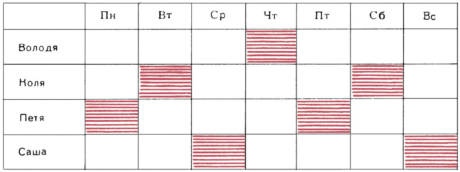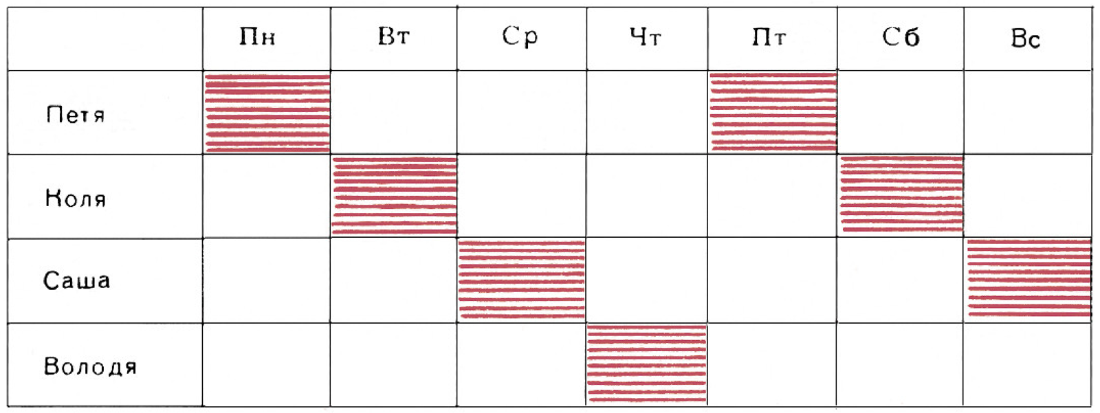 Рассмотрим следующий график дежурств (см. № 1 «Кванта», стр. 29):