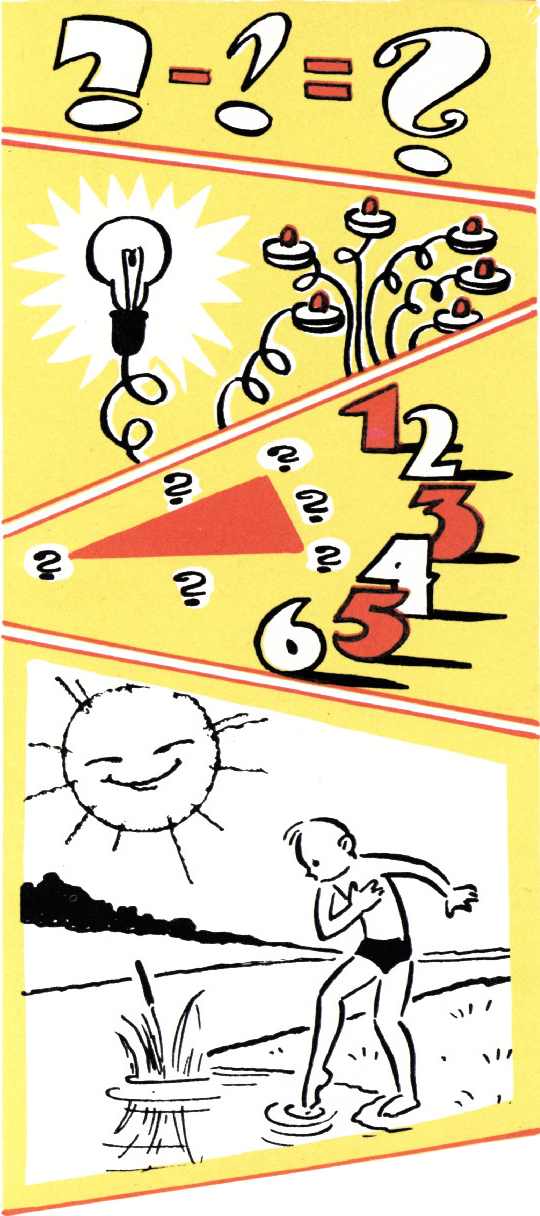 $\text{а}=1$, $\text{г}=5$, $\text{д}=3$, $\text{е}=2$, $\text{к}=8$, $\text{м}=6$, $\text{с}=7$, $\text{ф}=9$. - Все выключатели нужно соединить последовательно с лампочкой, затем эту цепочку подключить к источнику. Первый, второй и пятый выключатели должны быть в «нормальном» положении разомкнутым и замыкаться при нажатии соответствующих. кнопок; остальные выключатели в «нормальном» положении должны быть замкнутыми и при нажатии соответствующих кнопок должны «размыкаться».