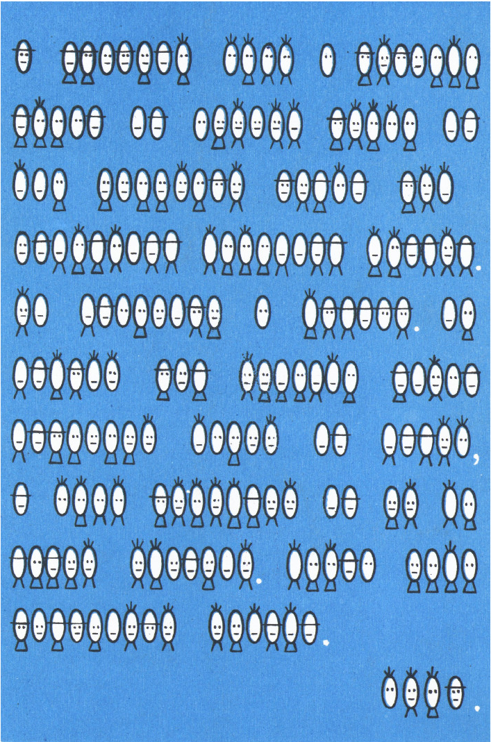 Федя сразу узнал тайнопись, которой они пользовались в школьные годы, но к несчастью он успел за прошедшие годы забыть шифр. Он помнил лишь то, что каждой рожице соответствовала определённая буква, причём буквы Е и Ё не различались.