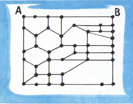 $A$ до города$B$ при условии, что количество промежуточных городов чётно (таким образом, прямой путь от$A$ к$B$ не годится, ибо пролегает через нечётное количество городов). - Когда учитель вошёл в класс, дежурный стирал запись предыдущего урока, которую учитель собирался использовать. Остановив дежурного, учитель попросил его по оставшимся цифрам восстановить стёртые. Можно ли это сделать?