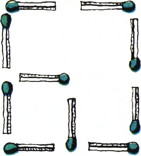 Из фигуры на рисунке удалите две спички так, чтобы осталось два квадрата.