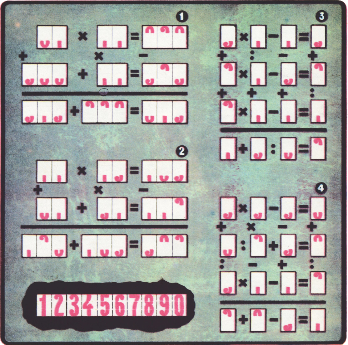 Допишите «хвостики» и «петельки» до цифр так, чтобы выполнялись все указанные действия. Образец написания цифр приведён на рисунке. Действия в примерах надо производить последовательно сверху вниз и слева направо, а не по обычно принятому «старшинству».
