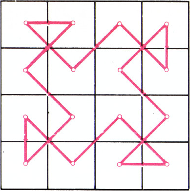 $4\times4$ и вернулся на исходное поле, побывав на каждом поле один раз.Какое наименьшее число прямых (не диагональных) ходов он мог сделать?