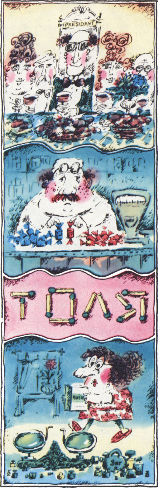 По случаю избрания Мирафлореса президентом Анчурии был устроен роскошный обед. За круглый стол сели 666 гостей, большинство из которых были лысыми. Назовём двоих сидящих по обе стороны от каждого гостя — его соседями; двоих сидящих через одного от него по обе стороны, — его «вторыми соседями» и т. д.
