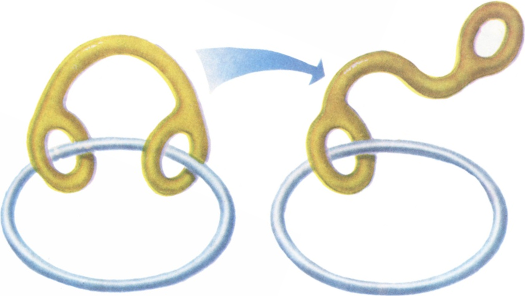 А теперь подумайте, можно ли распутать крендель с одним ушком, зацепленным за другое (рисунок внизу).