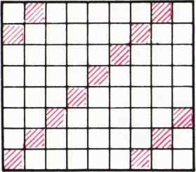 $O$ и проведём через неё 14 прямых, параллельных диагоналям семиугольника. Эти прямые разобьют плоскость на 28 углов, в сумме составляющих$360^\circ$. Предположим, что каждый из этих углов не меньше, чем$13^\circ$, тогда их сумма будет не меньше$28\cdot13^\circ=364^\circ$, a на самом деле она равна$360^\circ$. Противоречие!- Не сможет. Допустим противное. Заштрихуем некоторые квадраты