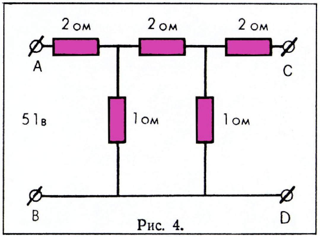 Имеется электрическая цепь, изображённая на рисунке 4. Что покажет вольтметр с очень большим внутренним сопротивлением, если его присоединить к точкам