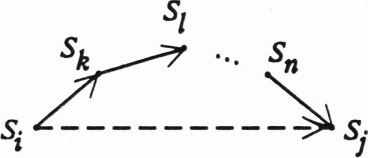 Обозначим определения, данные Тарантогой, через $S_i$ ($i=1$, $\ldots$, $n$). Будем утверждение «сепуление в смысле $S_i$ является сепулением в смысле $S_j$» обозначать так: $S_i\to S_j$. (Можно представлять себе $S_i$ как «множество всех сепулений по $i$-му определению», тогда $S_i\to S_j$ будет означать, что $S_i$ содержится в $S_j$.) Ясно, что результат $S_i\to S_j$ будет следовать из ранее защищённых, только если уже защищена цепочка диссертаций, ведущая из $S_i$ в $S_j$ (см. рисунок).