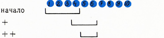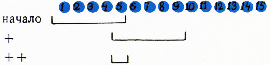 Первая проверка $\{\text{1—5}\}$. «$+$» проверяем $\{\text{5—9}\}$.