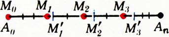 Расстановка фишек по точкам всё время меняется, причём каждая фишка движется лишь вправо. Ясно, что после некоторого количества таких операций фишка $M_k$ придёт в точкy $A_n$, что и требовалось.