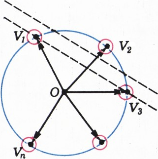 Пусть в начальный момент черепахи находились в точках $A_1$, $\ldots$, $A_n$, расположенных в круге радиуса $R$ с центром в точке $O$. Отложим от точки $O$ векторы скоростей черепах $\overrightarrow{v_1}$, $\ldots$, $\overrightarrow{v_n}$. Ясно, что концы $V_1$, $\ldots$, $V_n$ этих векторов являются вершинами некоторого выпуклого $n$-угольника, вписанного в окружность радиуса $v$, равного величине скорости любой черепахи. Построим круги радиуса $\eps$ с центрами в точках $V_1$, $\ldots$, $V_n$. При достаточно малом $\eps$ любой многоугольник $B_1B_2\ldots B_n$, вершины которого принадлежат этим кругам, очевидно, тоже будет выпуклым. (В качестве $\eps$ можно взять, например, половину наименьшего из расстояний от точек $V_i$ до прямых, соединяющих соседние с $V_i$ вершины, — см. рисунок.)