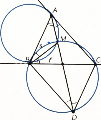 \angle ADB=\dfrac12{\smile}{BsM}=\angle ABM=\dfrac12{\smile}{AM}=\angle CAD,\\