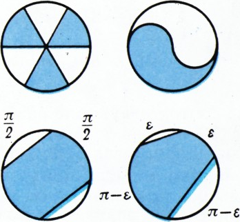 Доказательство, что построенная фигура не покрывает полукруг, во всех случаях опирается на такое соображение: концы диаметра полукруга находятся на расстоянии 2, следовательно, их могут закрыть лишь такие две точки построенной фигуры, которые являются диаметрально противоположными точками круга радиуса 1, из которого мы её вырезаем; таким образом, наша фигура должна была бы содержать целый полукруг с центром